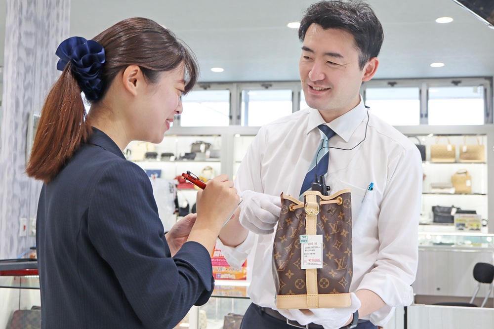 店舗で先輩社員と一緒に、実際の商品が本物か偽物かの見分け方を学んだり、商品の値付けを体験していただきます。