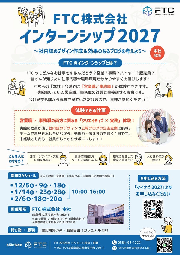 【2027年新卒者向け】インターンシップおよび座談会・職場見学会のお知らせ
